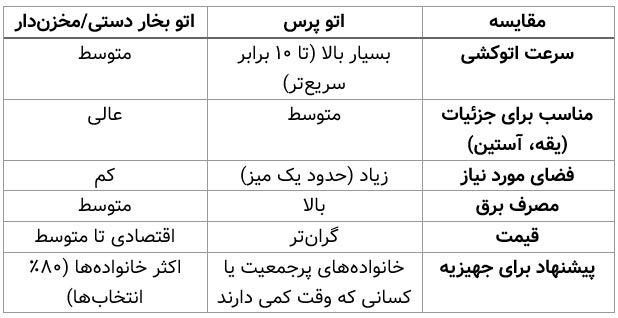 اگر بودجه بیشتر و حجم لباس بالایی دارید → اتو پرس سرمایهگذاری عالی برای سالهای طولانی است.